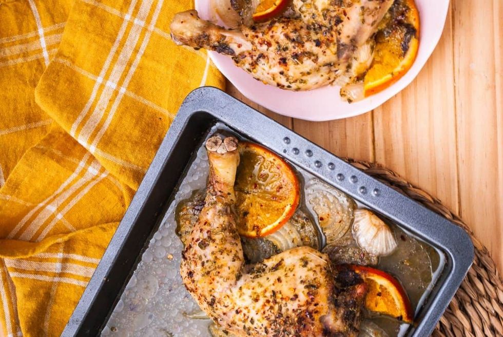 Salca pikante, e ëmbël e portokallit i kthen kofshët e thjeshta të pulës në diçka shumë të veçantë