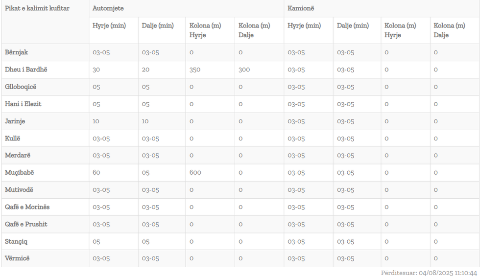 Po ashtu edhe te Dheu i Bardhë pritjet për të hyrë në Kosovë janë deri në 30 minuta, ndërsa kolona e veturave është 350 metra.