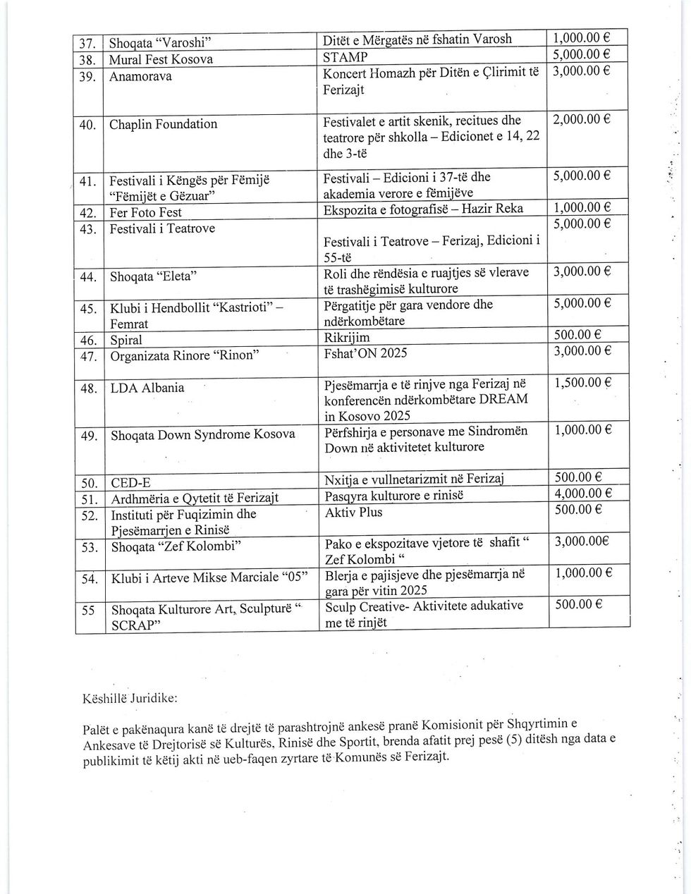 “Palët e pakënaqura kanë të drejtë të parashtrojnë ankesë pranë komisionit për shqyrtimin e ankesave në drejtorinë e Kulturës, Rinisë dhe Sportit, brenda afatit prej pesë ditësh nga publikimi i listave”, thuhet në njoftim./Telegrafi/