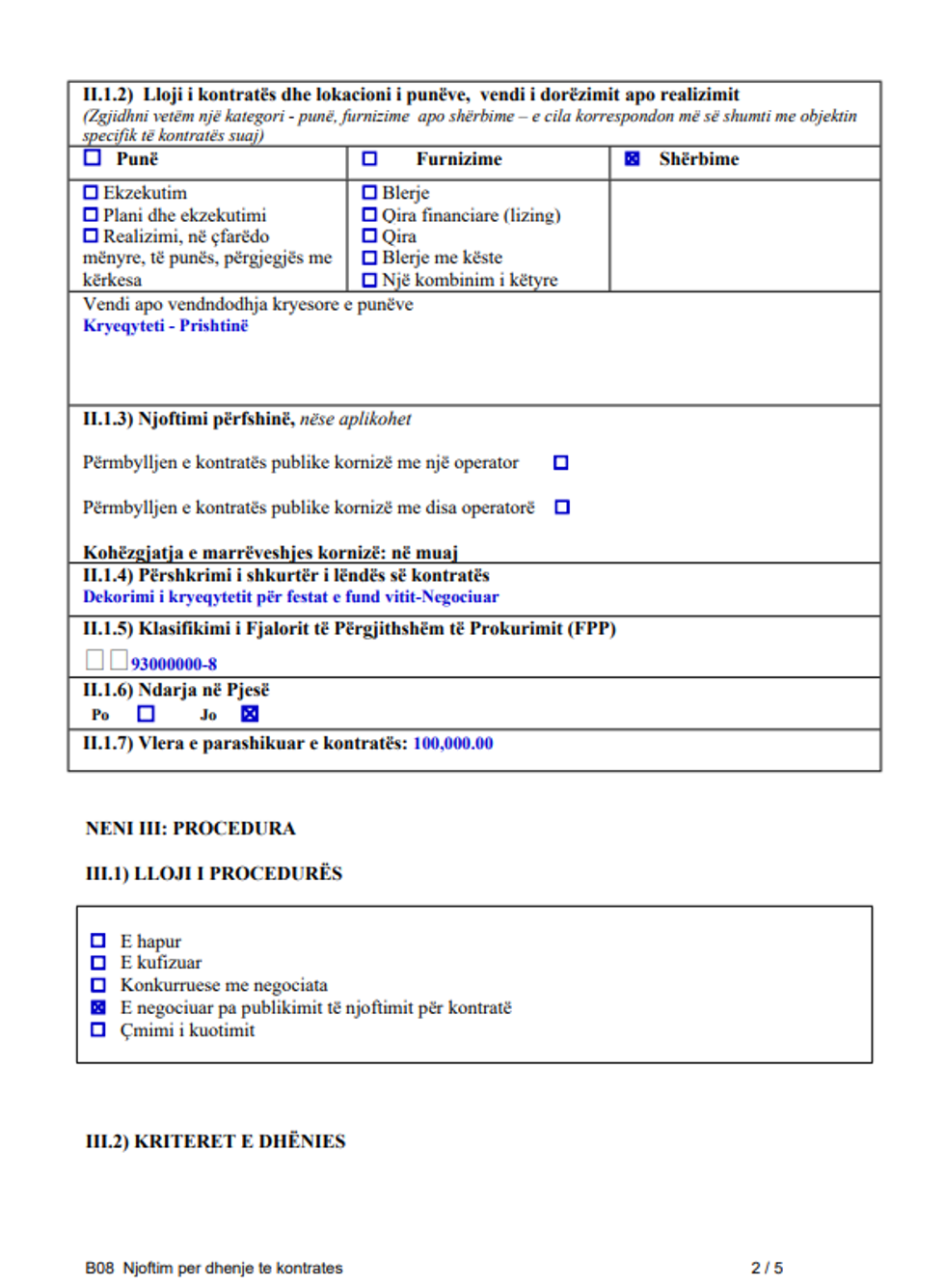 Kontrata ka të bëjë me shërbime për dekorimin e shesheve të kryeqytetit për festat e fundvitit dhe është dhënë përmes procedurës së negociuar.