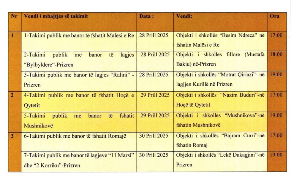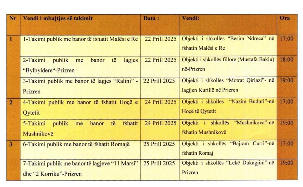 “Në takimin e parë qytetarët japin propozimet e tyre për projekte, kurse në takimin e dytë votohet për projekte të përzgjedhura. Projekti që merr vota më së shumti nga qytetarët vazhdon procedurën e hyrjes në projekt buxhetin e vitit 2026”, thuhet në njoftim.