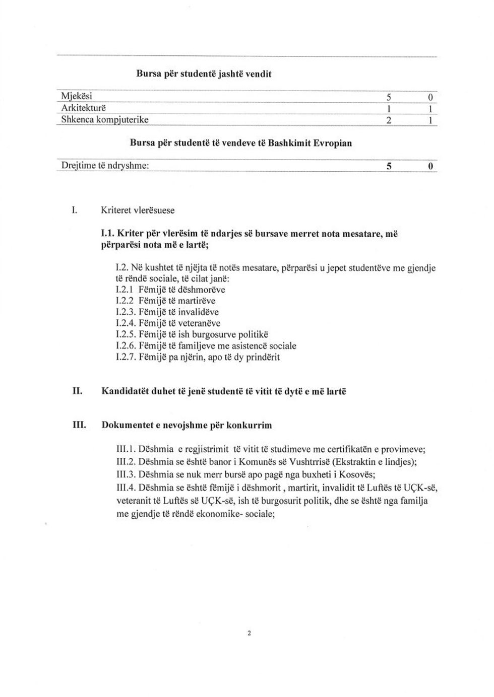 Komuna e Vushtrrisë ka hapur konkurs për ndarjen e bursave për studentët e Vushtrrisë.