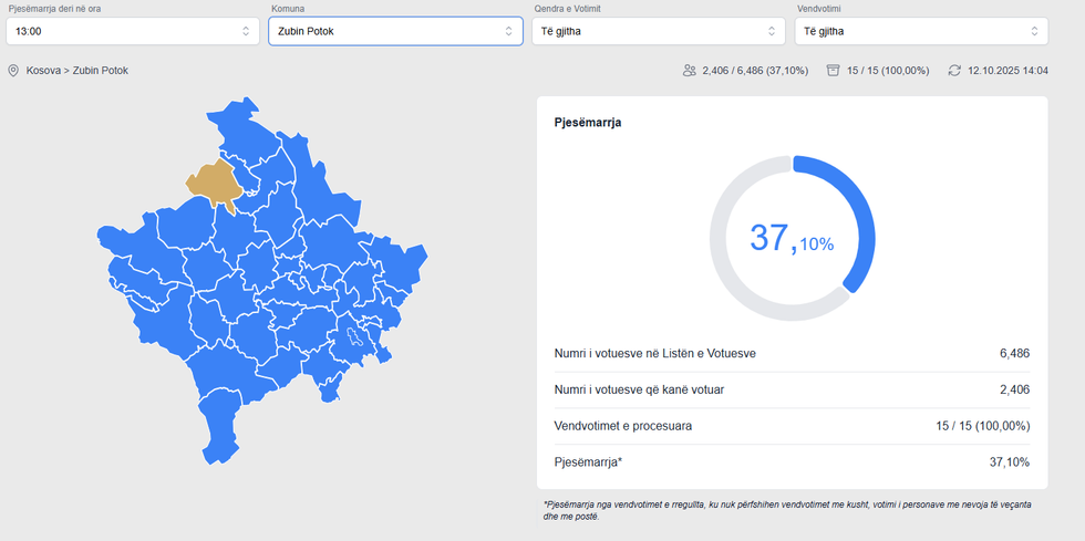 Në Zubin Potok kanë votuar 2 mijë e 406 qytetarë, nga 6 mijë e 486 qytetarë sa janë në listën e votuesve.