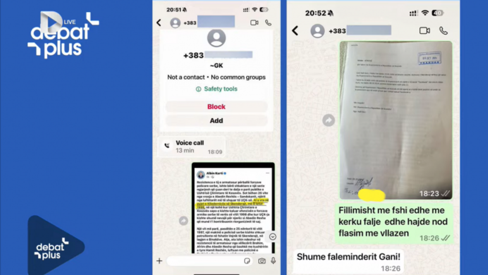 Gjatë komunikimit, Geci tregon se i kishte kërkuar Konjufcës që kryeministri në deytrë Albin Kurti të fshinte një postim të mëhershëm dhe të kërkonte falje publike për të.