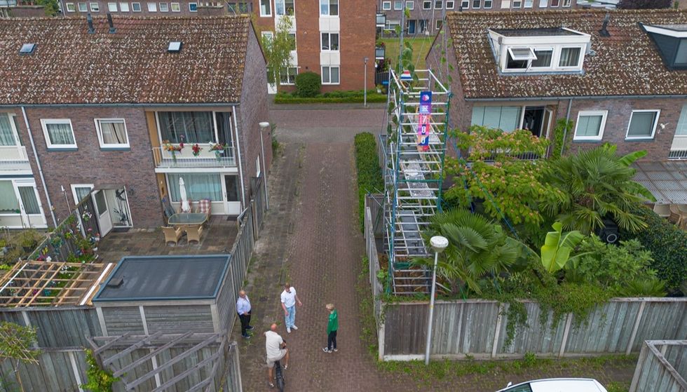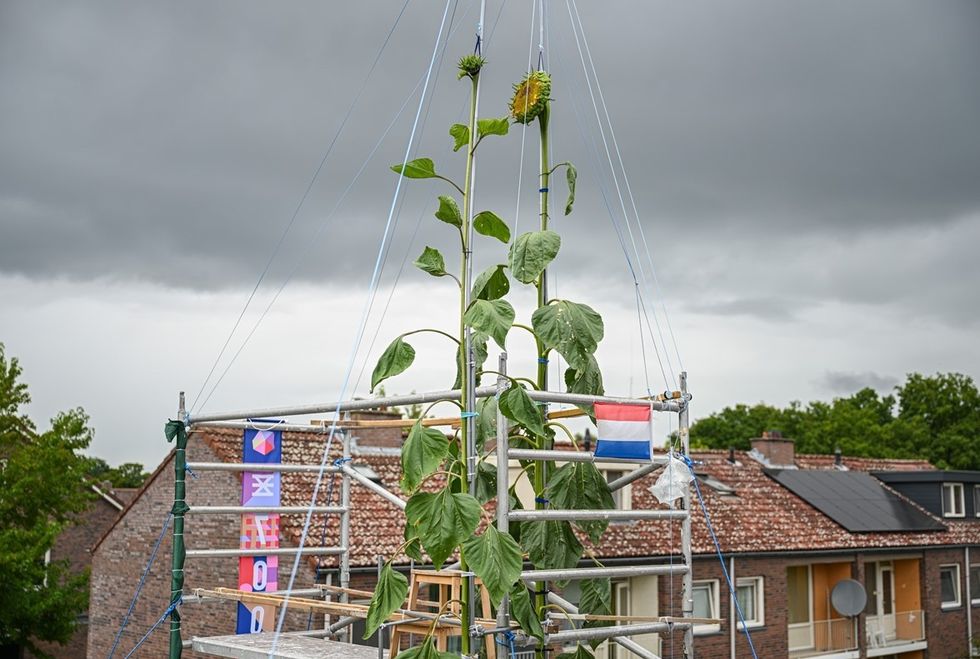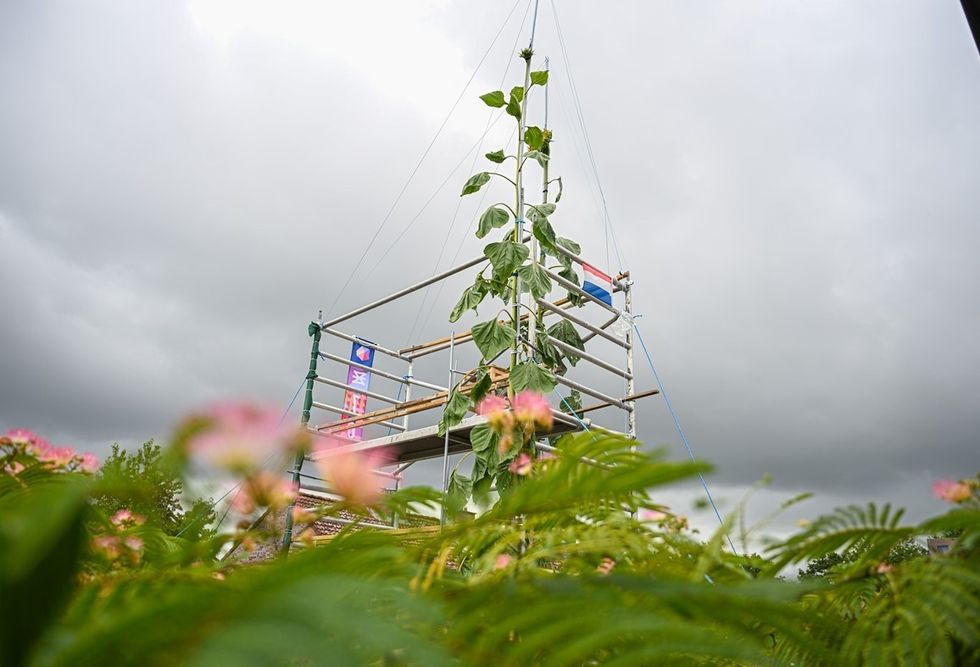 Van der Velde, i cili ka kultivuar luledielli gjigante për gati 30 vjet, ka ngritur skela në oborrin e tij për të mbështetur bimën.