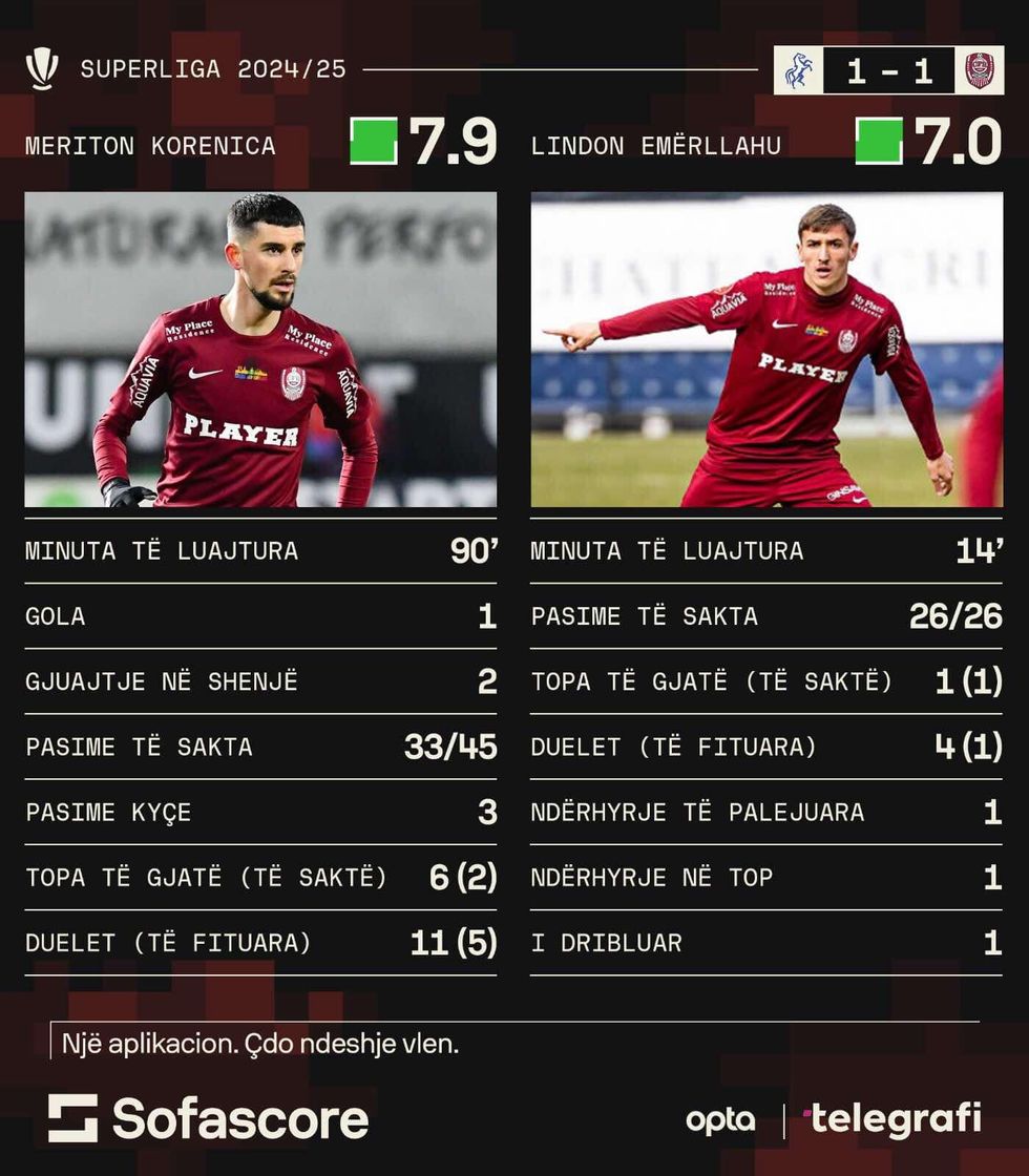 SofaScore e ka vlerësuar si lojtarin më të mirë në fushë, duke e notuar me notën 8.0.