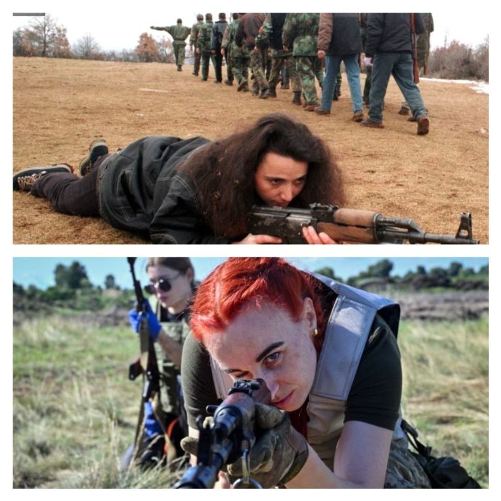 Kosovë: Një luftëtare e Ushtrisë Çlirimtare të Kosovës (UÇK) teksa stërvitej në rajonin e Drenicës, në perëndim të kryeqytetit të Kosovës, Prishtinë, më 15 shkurt 1999. Në mesin e të vrarëve ishin edhe dhjetëra gra luftëtare të UÇK-së.