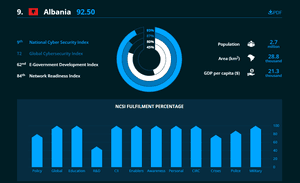 Në fushën e politikave të sigurisë kibernetike, Kosova ka arritur vetëm 6 pikë nga 15 sa janë në total, ndërsa Shqipëria ka arritur rreth 12 pikë. Po ashtu, në kontributin global në sigurinë kibernetike, Kosova rezulton me 0 ndërsa Shqipëria ka maksimumin e pikëve 6.