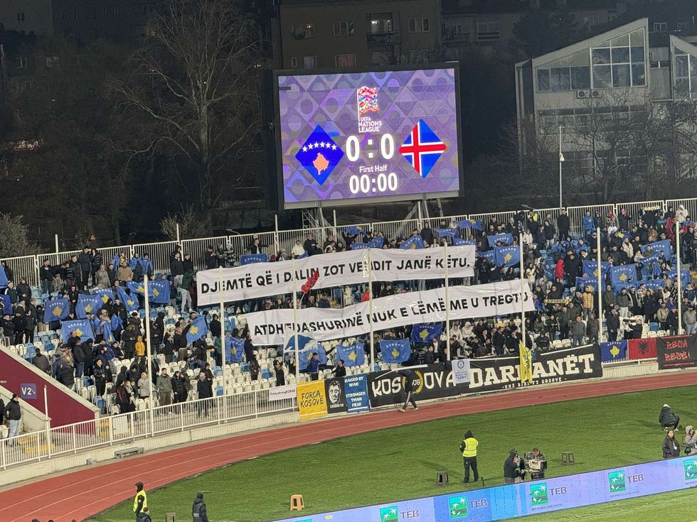 1' Islanda luan me topin e parë.20/03/2025 20:45-Dardanët me transparent për ndeshjen Kosovë-Islandë