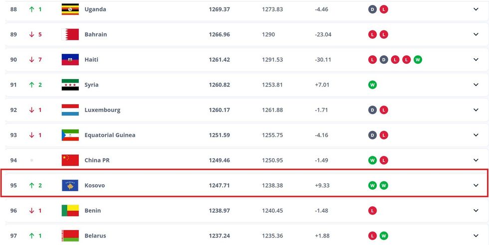Kombëtarja e Kosovës ka shënuar përparim në këtë renditje, duke u ngritur për dy pozita pas paraqitjeve të mira në ndeshjet e qershorit.