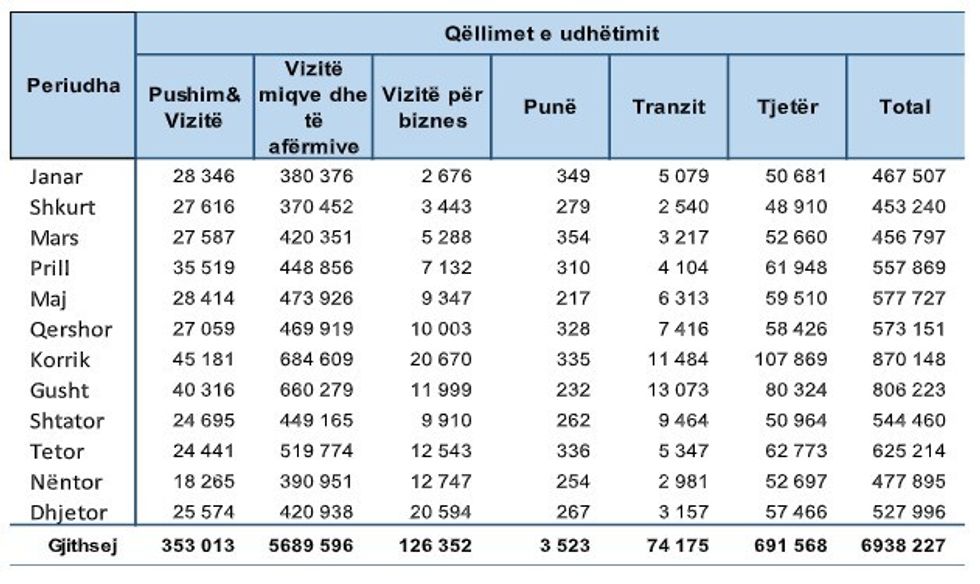 Kjo përbën një rritje prej 18.3% të vizitorëve të jashtëm në raport me vitin 2023. Numri i net-qëndrimeve gjithsej ka arritur në 1.522.890, me një pjesëmarrje më të madhe nga vizitorët e huaj (54.3%).