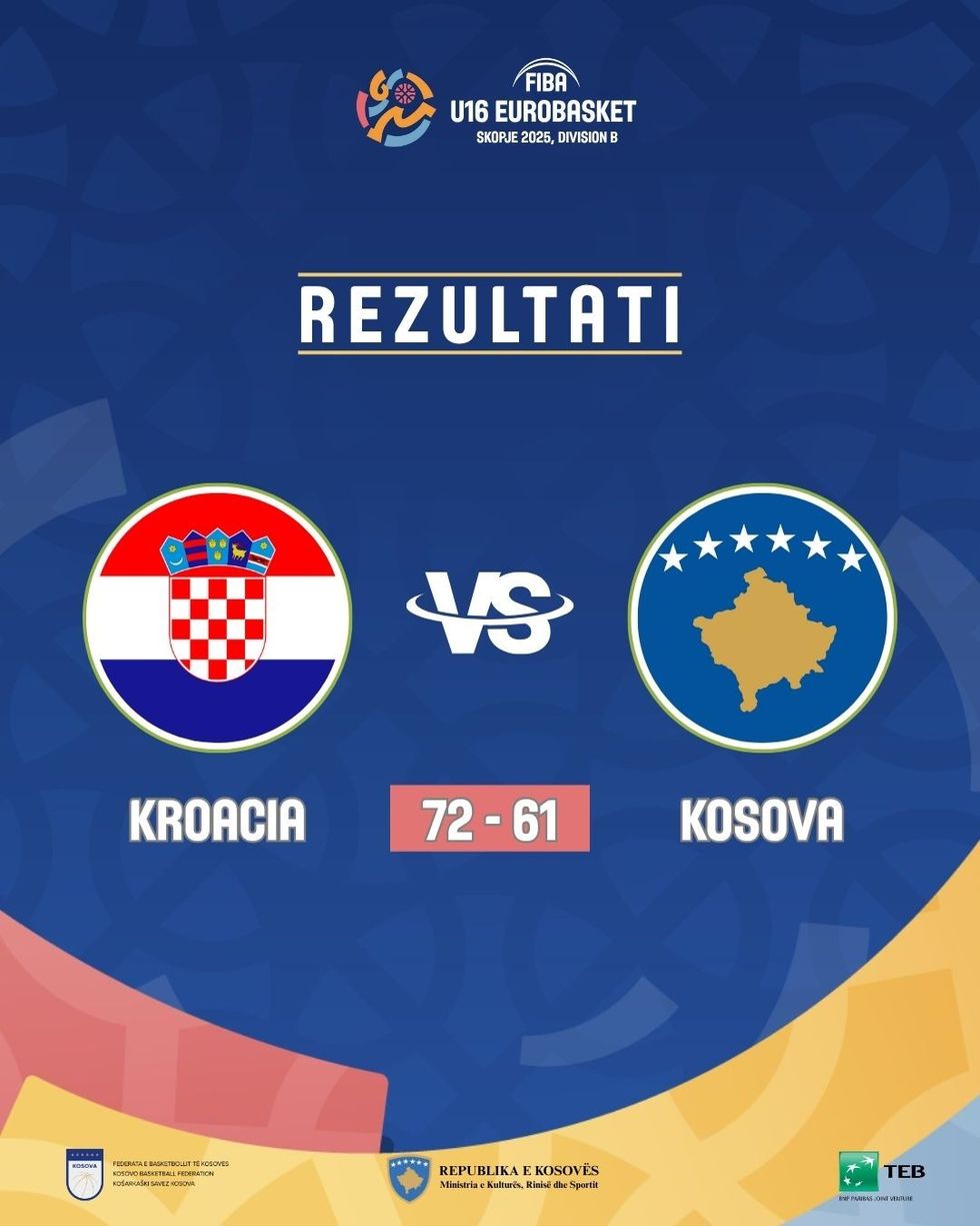 Kombëtarja e Kosovës U16 në basketboll luajti për 30 minuta baras me Kroacinë, por humbja e çerekut të parë ishte fatale për humbjen finale me rezultat 72:61.