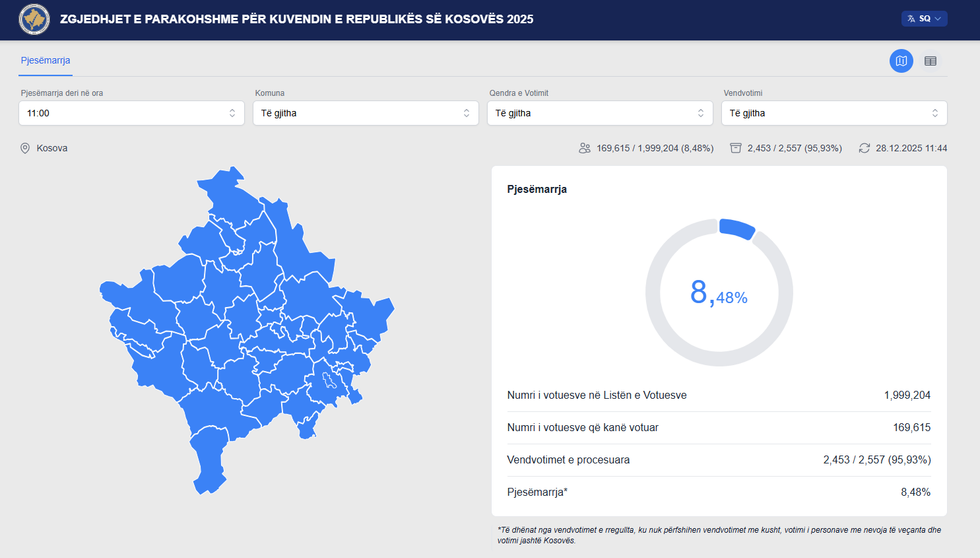 - 28/12/2025 11:46- KQZ: Deri në ora 11:00 kanë votuar 8.48 për qind e qytetarëve