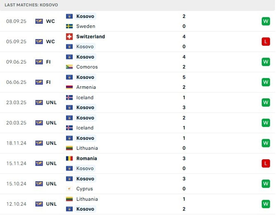 Megjithatë, edhe forma e përgjithshme e Kosovës ka qenë pozitive, pasi përveç humbjes nga Zvicra, në pesë ndeshjet e fundit ka edhe tri fitore tjera ndaj Komoreve, Armenisë dhe Islandës.
