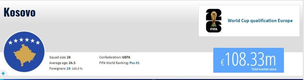 Për nga vlera e skuadrave, ekipi i Dardanëve ka një vlerë prej 108 milionë eurosh, teksa ai i Sllovenisë ka një vlerë më të lartë, 162.7 milionë euro.