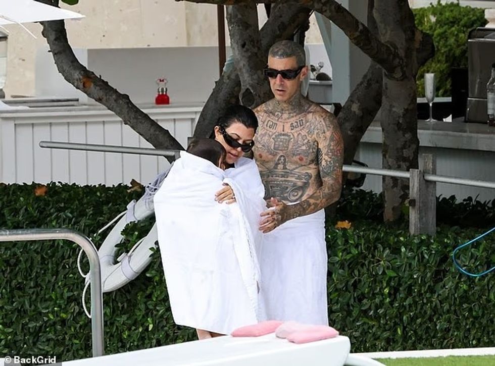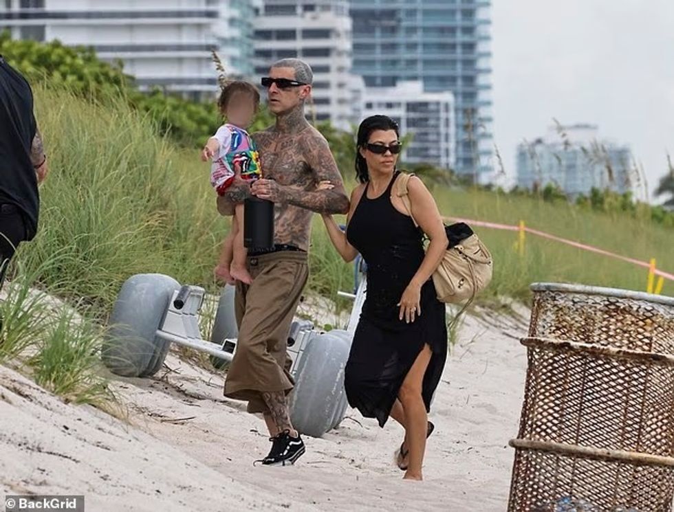 Ylli i reality show, 46 vjeç, u pa në shoqërinë e bashkëshortit të saj muzikant, Travis Barker, 49 vjeç, dhe djalit të tyre 21-muajsh, Rocky Thirteen.