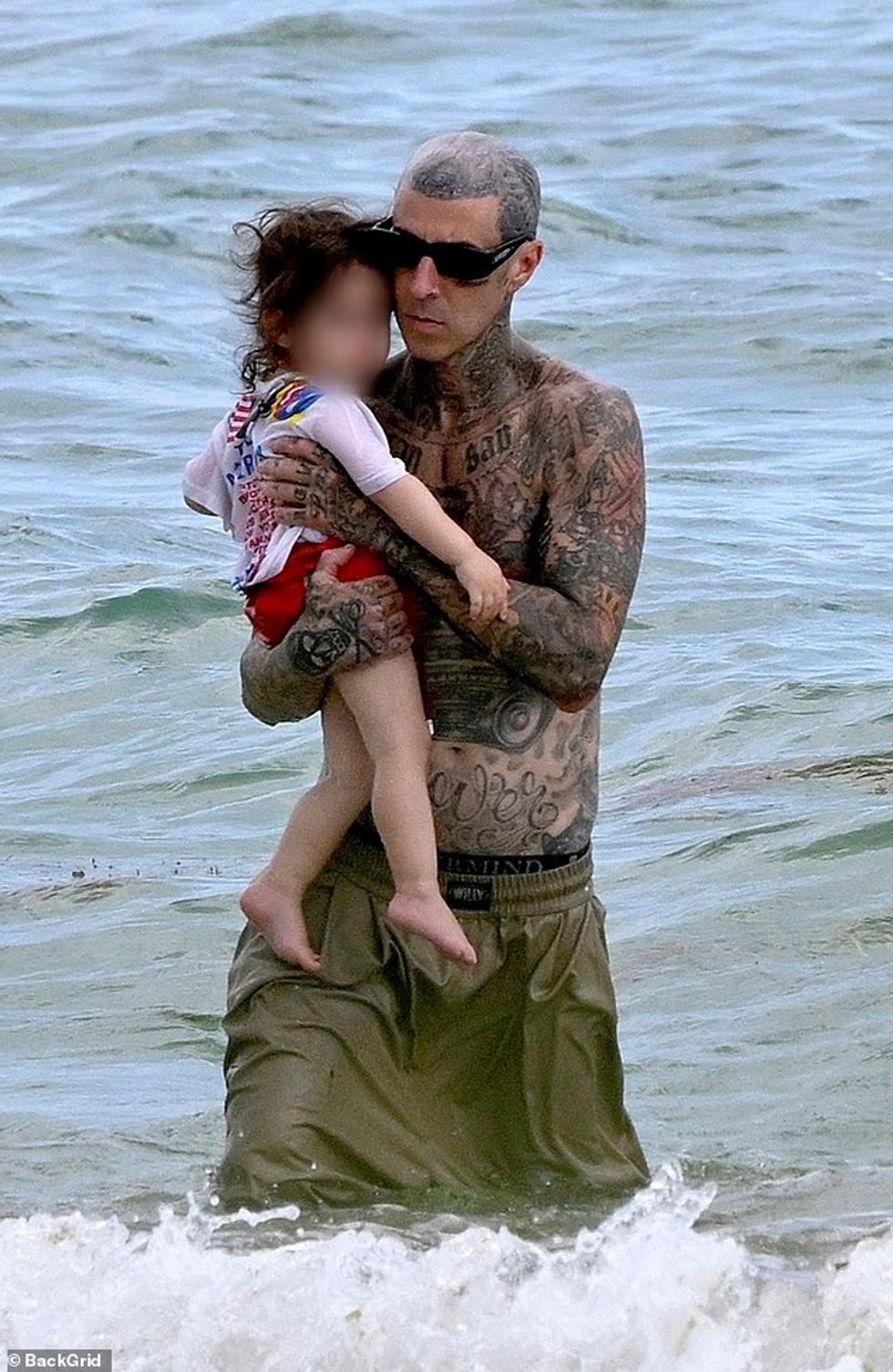 Travis u pa duke e mbajtur djalin në krah, duke shfaqur krenarinë si baba gjatë ditës së pushimit familjar.