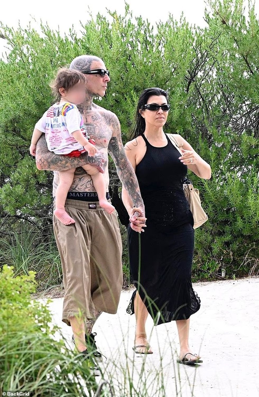 Ajo kishte zgjedhur një grim të lehtë që theksonte bukurinë e saj natyrale. Ndërkohë, Travis kishte një stil më të thjeshtë, me pantallona të gjata për plazh në ngjyrë kafe dhe syze të zeza.