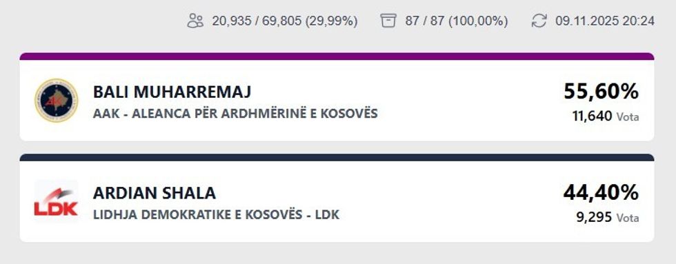 KQZ: Bali Muharremaj siguron mandatin e tretë në Suharekë me 55.6% të votave
