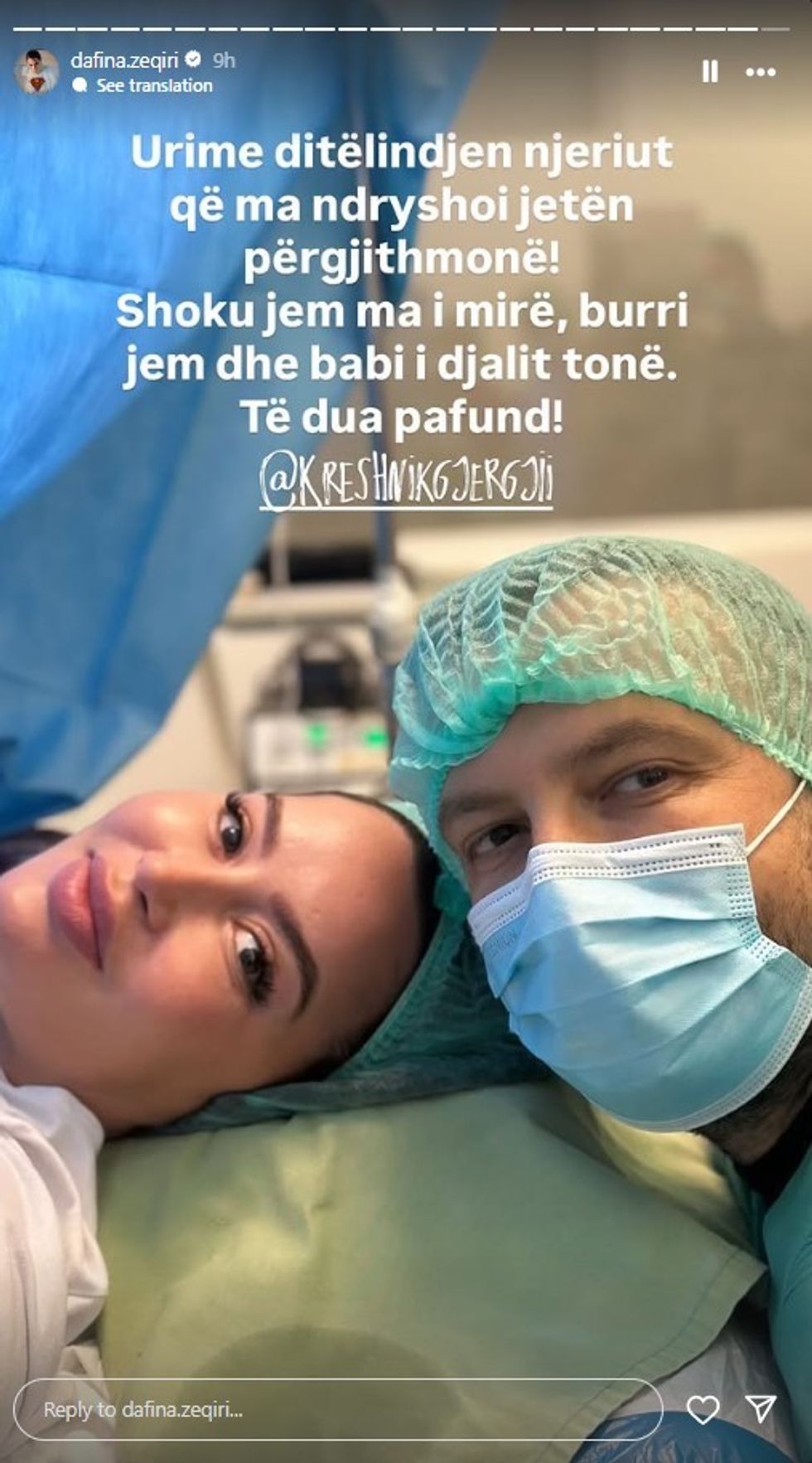 Artistja ka ndarë me ndjekësit një moment shumë të veçantë: një fotografi nga salla e lindjes, vetëm pak ditë pasi çifti u bënë prindër për herë të parë.