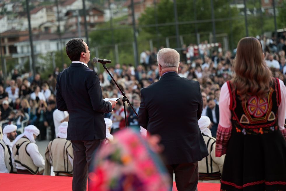 “Pesë dekada përkushtim e punë të palodhshme për ruajtjen e vlerave të folklorit burimor, përmes veshjeve, instrumenteve e këngës popullore, e kanë shndërruar këtë manifestim në një nga ngjarjet më të rëndësishme kulturore në trojet ku jetojnë shqiptarët. Është një vendtakim i përvitshëm për mijëra artdashës dhe një skenë ku vlerat kulturore marrin hov”, u shpreh në hyrje të fjalës së tij kryeministri Kurti.