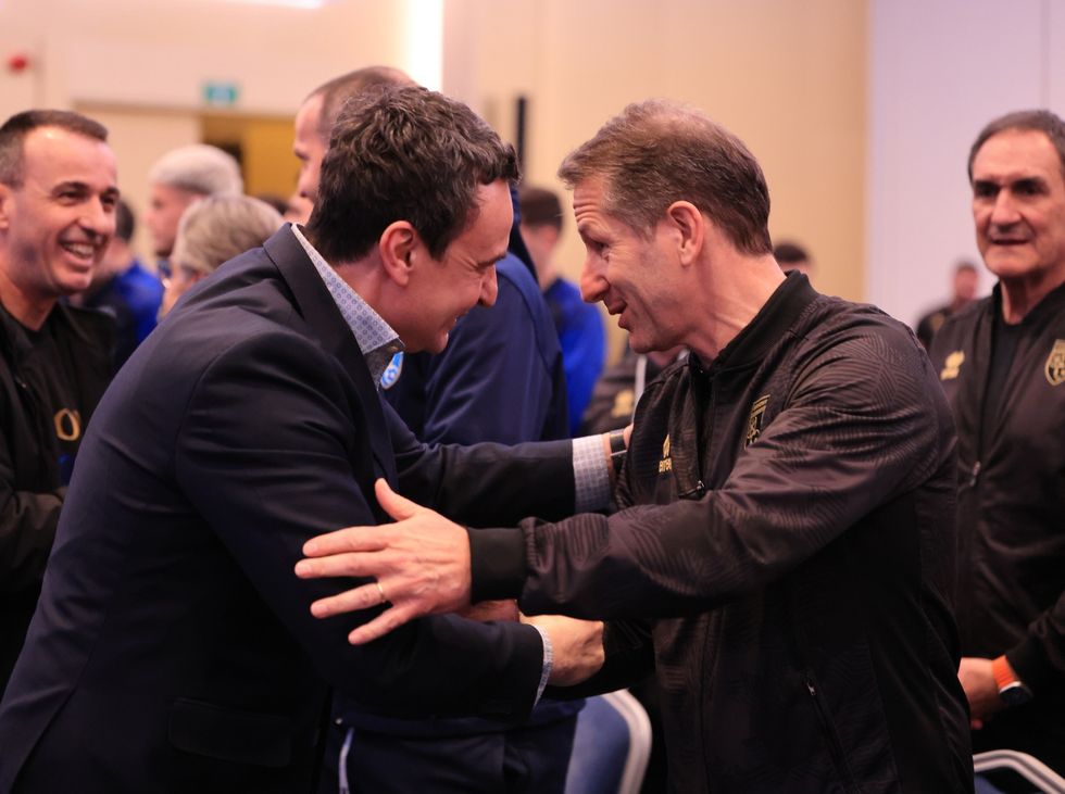Në fjalën e tij para futbollistëve dhe stafit, kryeministri Kurti i uroi Dardanët për fitoren historike në Bratisllavë, duke theksuar se rrugëtimi deri në finale është plotësisht i merituar.