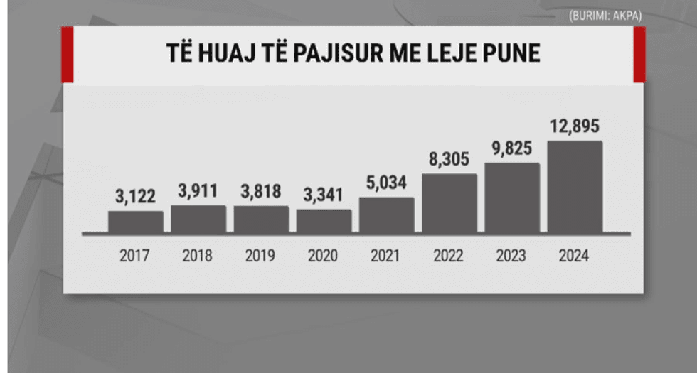 Shqipëria po josh të huajt. Synimet për të zëvendësuar fuqinë punëtore nga vendet e tjera, ndonëse me ulje-ngritje po japin rezultat. Sipas të dhënave nga Agjencia e Punësimit dhe Aftësive, vitin e shkuar numri i shtetasve të huaj të pajisur me leje pune arriti në gati 13 mijë.