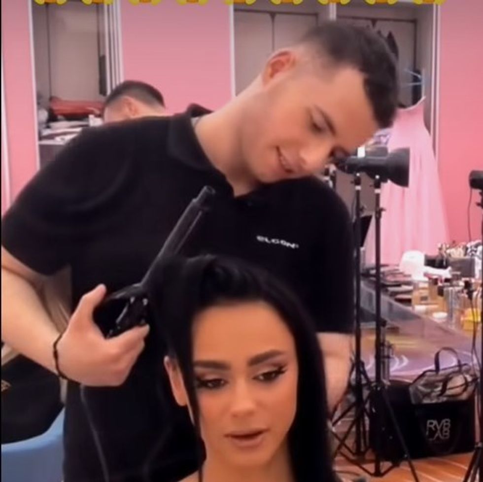 Në video, ndërsa parukieri kujdesej për pamjen e saj, ai i tha me shaka: "Të kam marrë inat”.