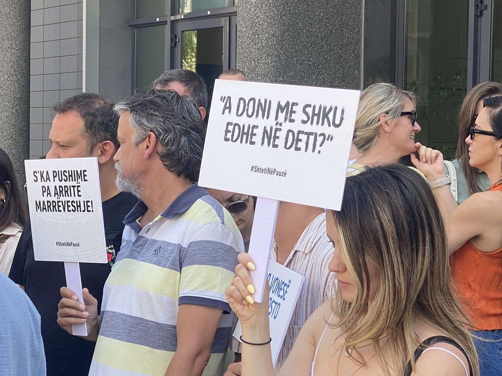 “Kur t’ju bëhet boll, kallëzoni”, “A doni me shku edhe në deti” - përfaqësues të shoqërisë civile protestojnë para Kuvendit