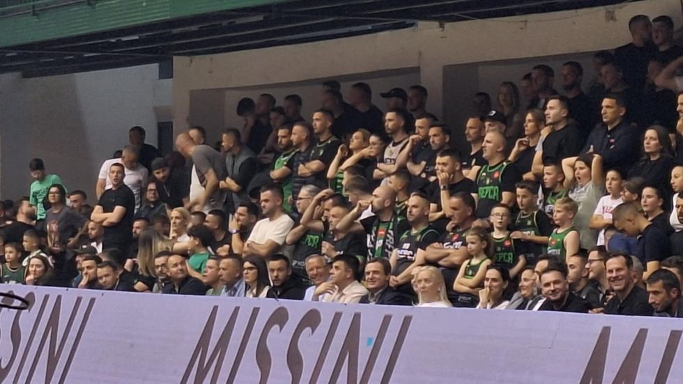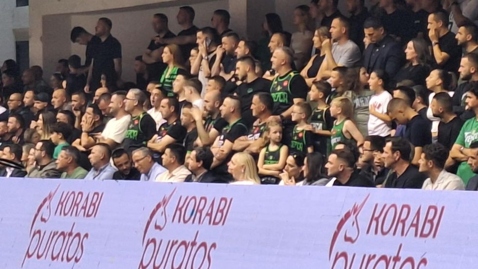 E në një atmosferë të jashtëzakonshme në palestrën 'Minatori' në Mitrovicë, ndeshjen po e shikojnë së bashku edhe dy kandidatët për kryeministër të Kosovës nga zgjedhjet e fundit.