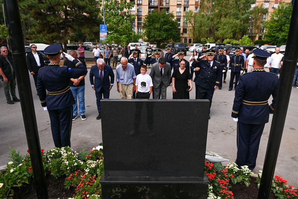 Kryeministri në detyrë i Republikës së Kosovës, Albin Kurti, bashkë me ministrin në detyrë të Punëve të Brendshme, Xhelal Sveçla, drejtorin e Përgjithshëm të Policisë së Kosovës, Gazmend Hoxha bën homazhe pranë pllakës përkujtimore të zyrtarit policor Triumf Riza, në 18-vjetorin e rënies së tij.