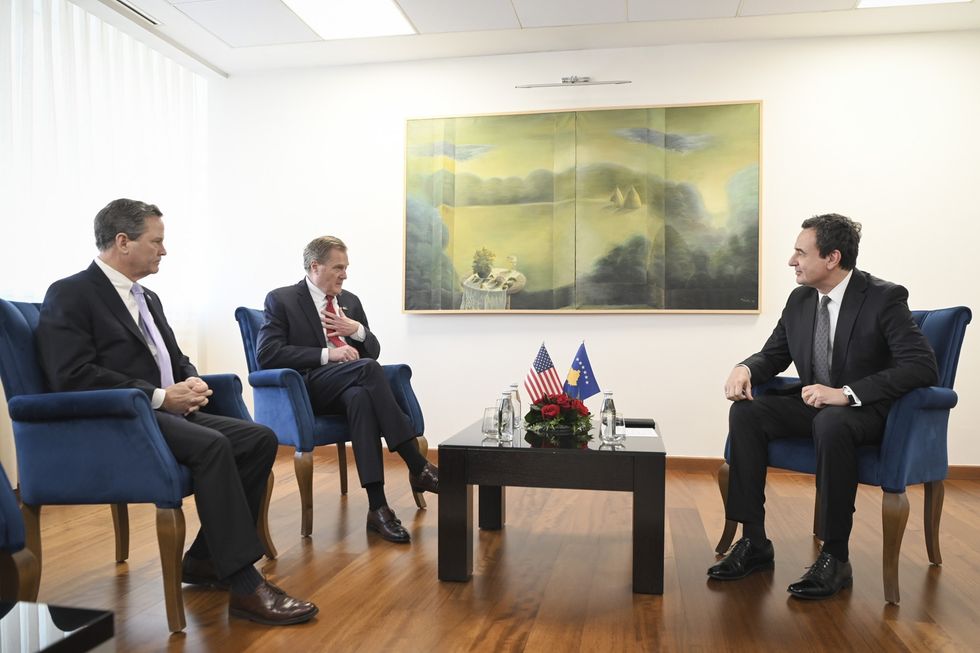 Kryeministri në detyrë, Albin Kurti priti sot një delegacion të Kongresit amerikan të përbërë nga kongresisti republikan Mike Turner dhe kongresisti demokrat Donald Norcross, të dy anëtarë të Asamblesë Parlamentare të NATO-s dhe të Komitetit të Shërbimeve të Armatosura të Dhomës së Përfaqësuesve.
