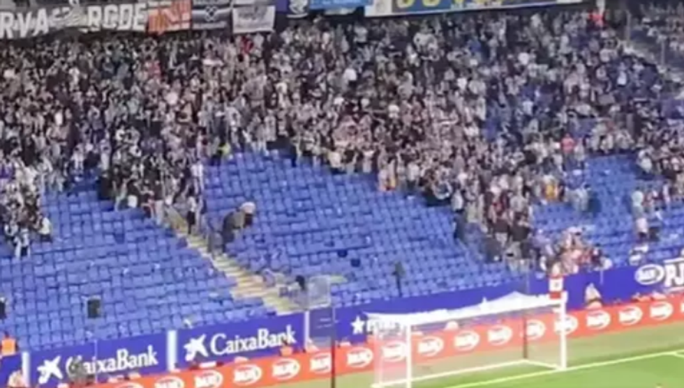 Gjyqtari i ndeshjes u detyrua ta ndalonte ndeshjen për një kohë dhe të konsultohej me policinë. Pas pak kohe, tifozët e Espanyol filluan të protestonin duke i lënë vendet e tyre bosh.