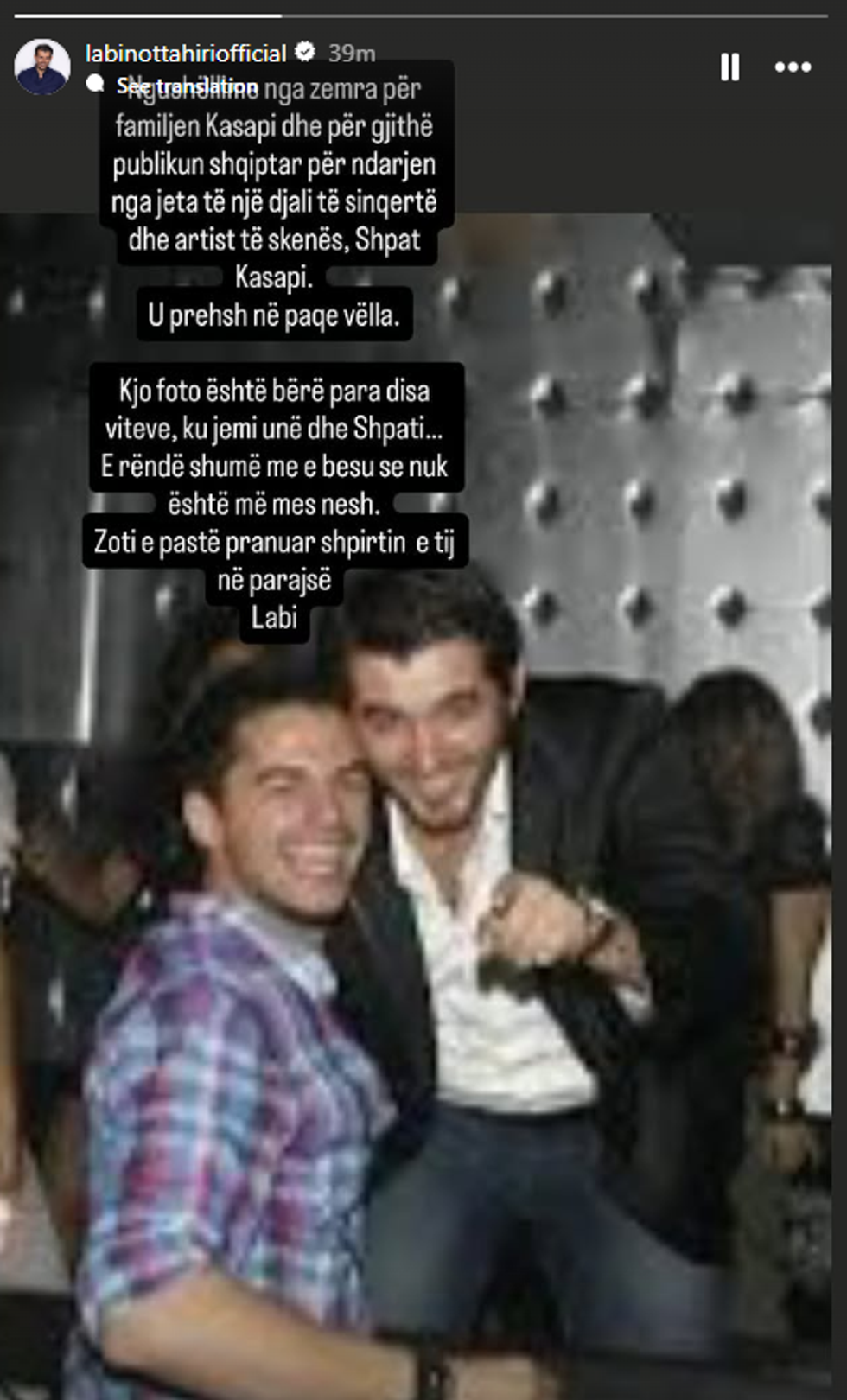 Labinot Tahiri - Labi ka reaguar me një postim të ndjerë në rrjetet sociale, duke ndarë dhimbjen dhe duke përkujtuar miqësinë e gjatë me Kasapin.