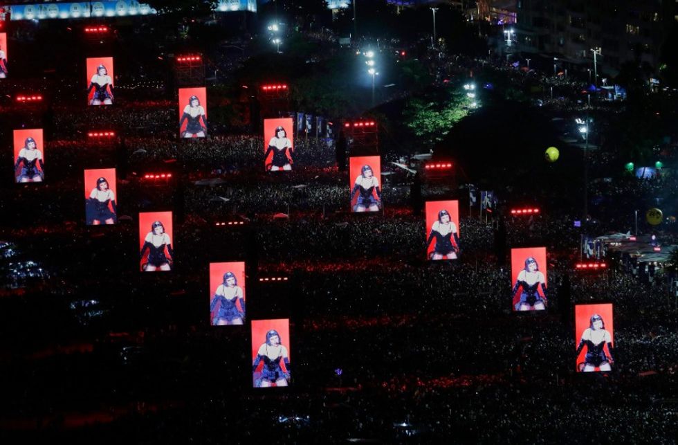 Gaga tërhoqi një audiencë të ngjashme me atë të Madonna-s, e cila performoi në të njëjtin vend në maj të vitit të kaluar, ku plazhi shndërrohet në një pistë gjigande vallëzimi për koncerte të tilla madhështore.