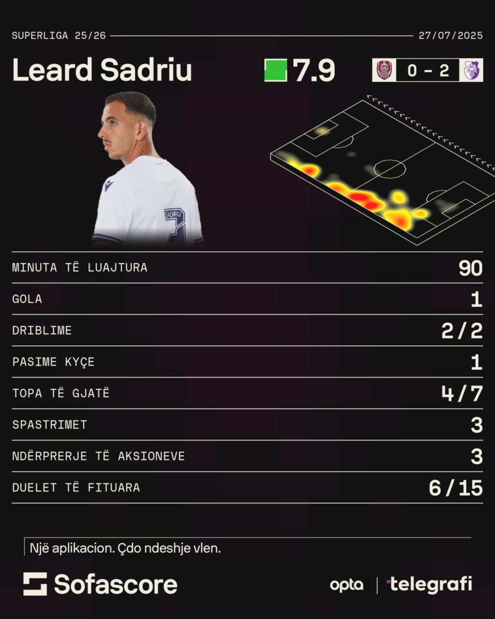 Ky është goli i dytë për Sadriun në vetëm tri ndeshje kampionale – një nisje ideale që dëshmon përshtatjen e shpejtë dhe rëndësinë që ka marrë në formacionin bazë të Argeș Pitești.