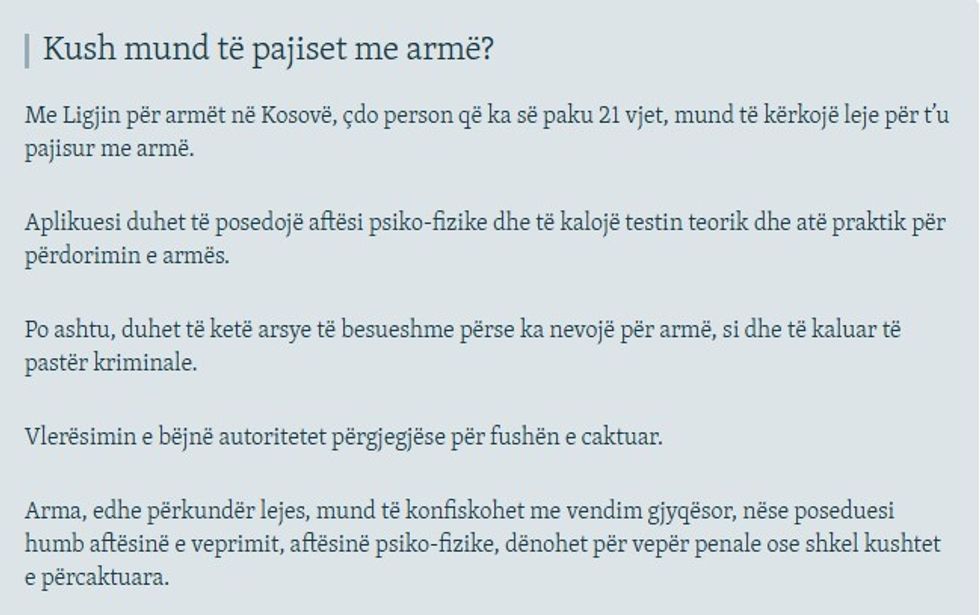 Këtë, në njëfarë mënyre, e konfirmon edhe Besniku, 25-vjeçar nga Prishtina, i cili është në procedura për sigurimin e lejes për armë.