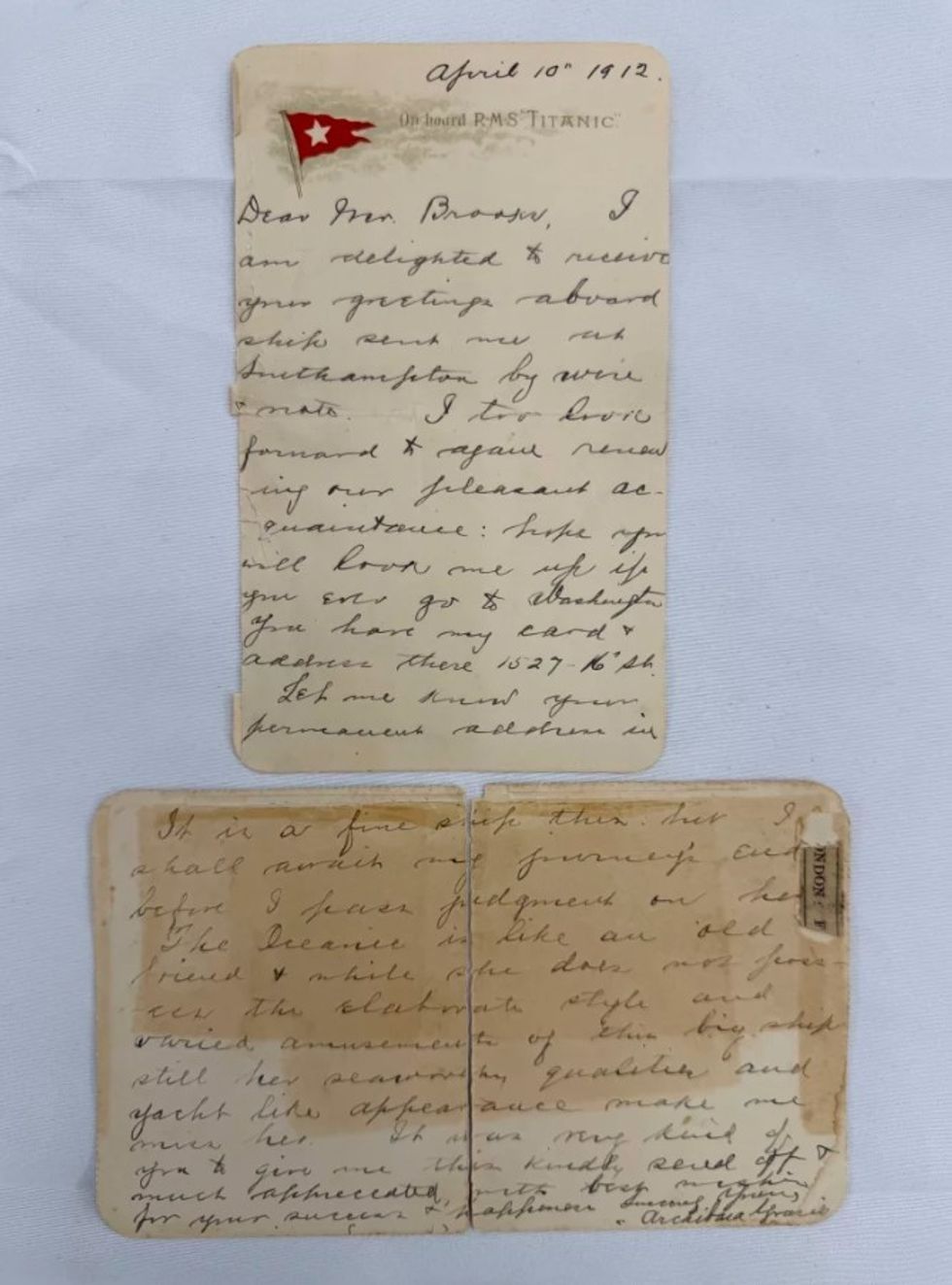 Letra mban datën 10 prill 1912, ditën kur ai hipi në Titanikun në Southampton, dhe pesë ditë para se të fundosej pasi goditi një ajsberg në Atlantikun e Veriut.