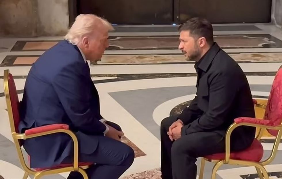 Udhëheqësit e SHBA-së dhe Ukrainës folën për rreth 15 minuta brenda Bazilikës së Shën Pjetrit në Qytetin e Vatikanit, në një takim të cilin Zelensky e përshkroi si me potencial të jetë 'historik'.