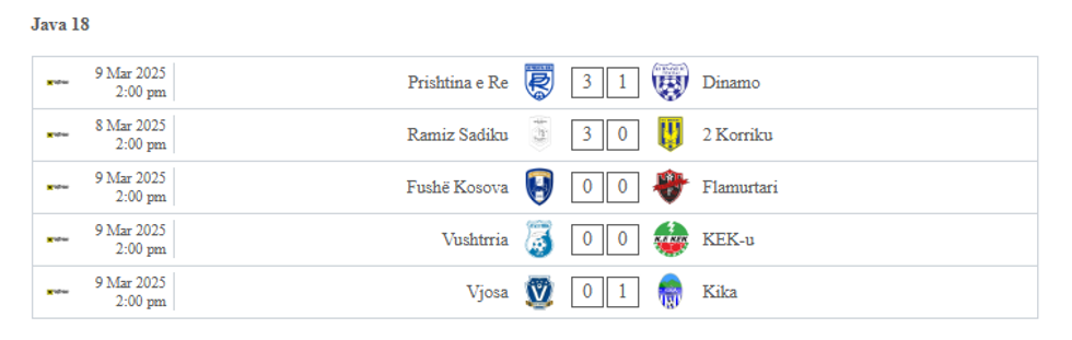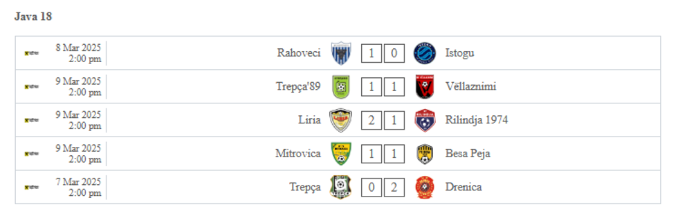 Janë mbyllur të gjitha ndeshjet e javës së 18-të në Ligën e Parë të Kosovës, ku nuk munguan rezultatet befasuese dhe lëvizjet në renditje.