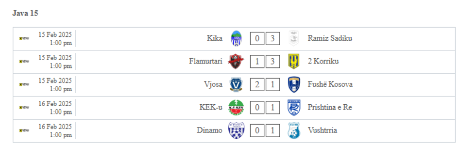 Janë zhvilluar ndeshjet e javës së 15-të në Ligën e Parë në të dyja grupet, A dhe B.