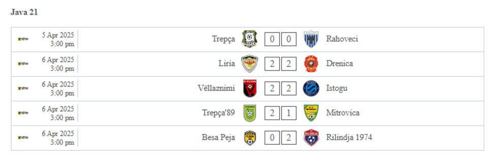Janë mbyllur nëntë nga dhjetë ndeshjet e javës së 21-të të Ligës së Parë të Kosovës, ku nuk munguan përballjet e forta dhe ndeshjet me gola.