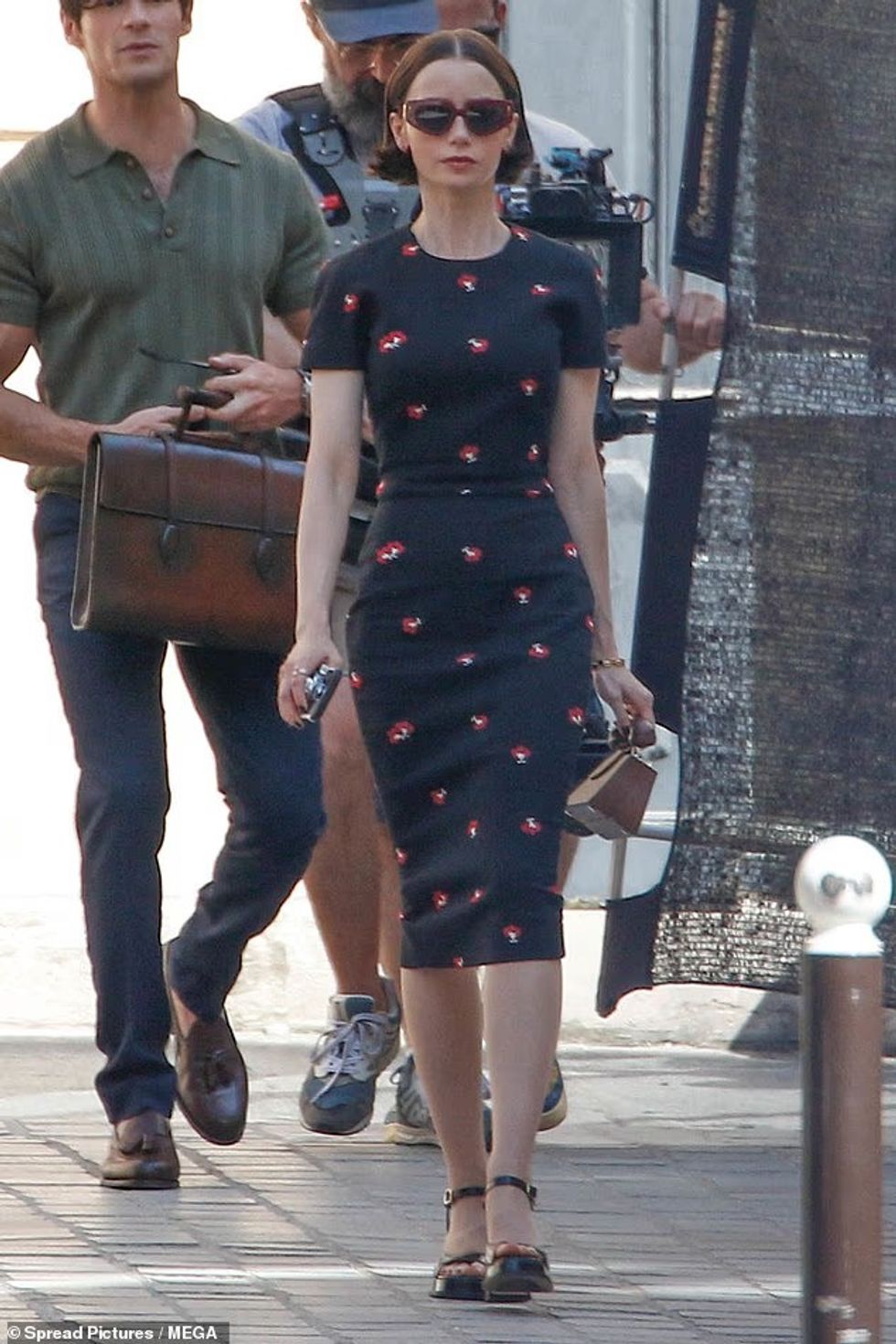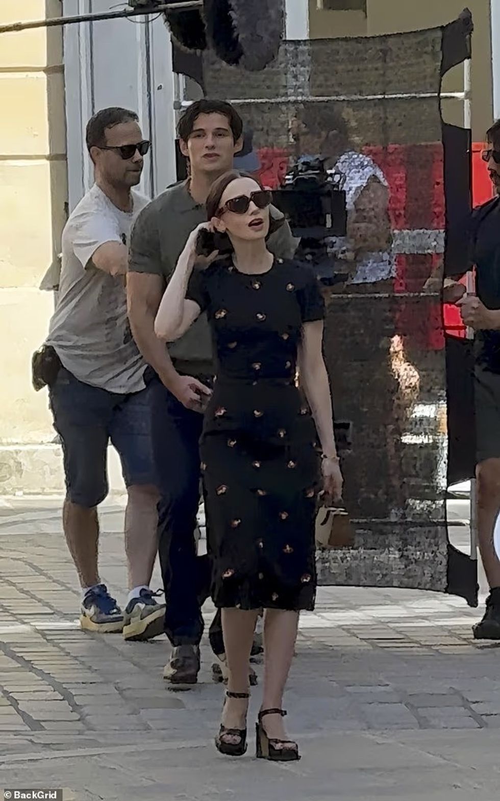 Aktorja, 36 vjeçe, e cila luan rolin e ekzekutives së marketingut Emily Cooper, u pa duke ecur nëpër qytet me një fustan të ngushtë deri poshtë gjurit.