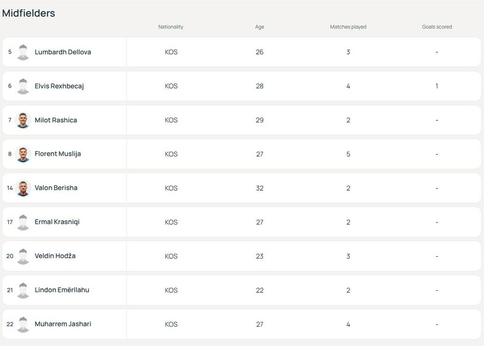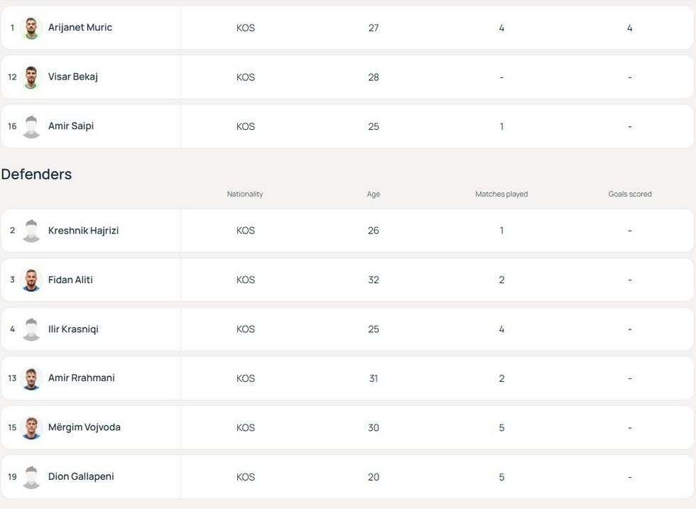 Në vend të këtyre dy lojtarëve në listë janë rikthyer Lindon Emërllahu dhe Baton Zabërgja, të cilët nuk ishin në ndeshjen ndaj Sllovenisë.