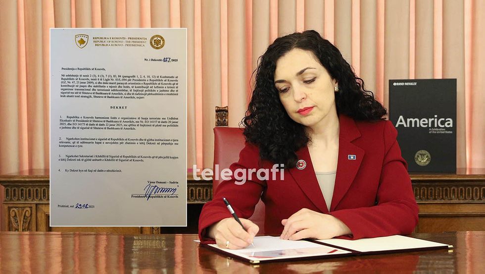 Përmes një dekreti, presidentja e Kosovës, Vjosa Osmani, ka harmonizuar listën e vendit për organizatat e huaja terroriste me atë të Shteteve të Bashkuara.