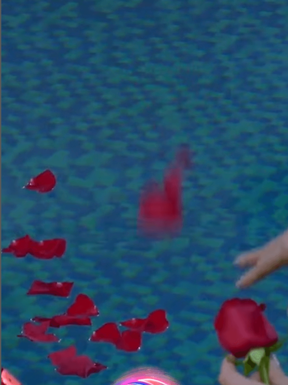 E dëshpëruar, ajo mori trëndafilat dhe hodhi petalet në pishinë.