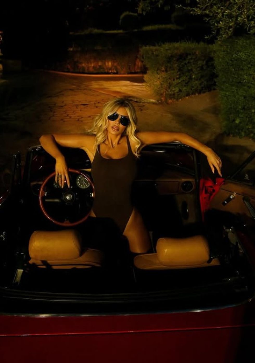 Moderatorja dhe këngëtarja, e njohur për stilin e saj unik dhe prezencën karizmatike, këtë herë ka pozuar mbi një makinë klasike ngjyrë të kuqe, duke kombinuar atmosferën retro me një sens modern të modës.