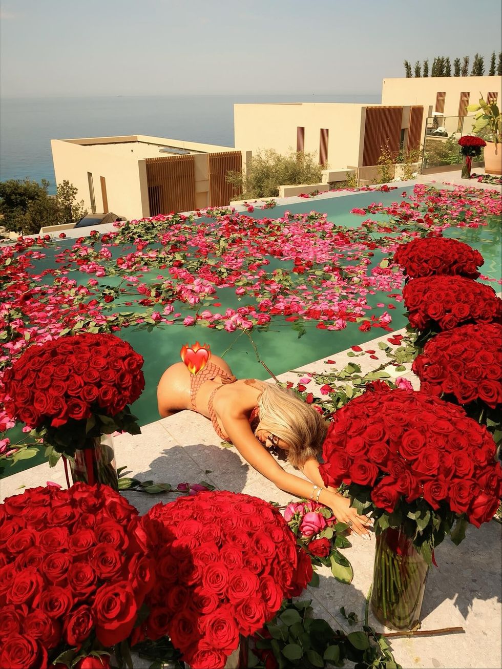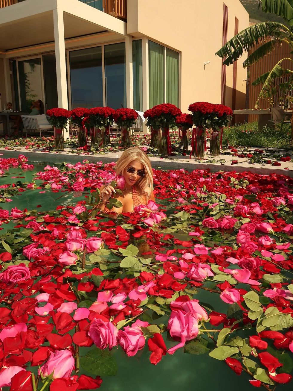 Luana Vjollca zgjohet në mëngjesin e ditëlindjes së 34-të me një mal trëndafilash në pishinën e një resorti luksoz