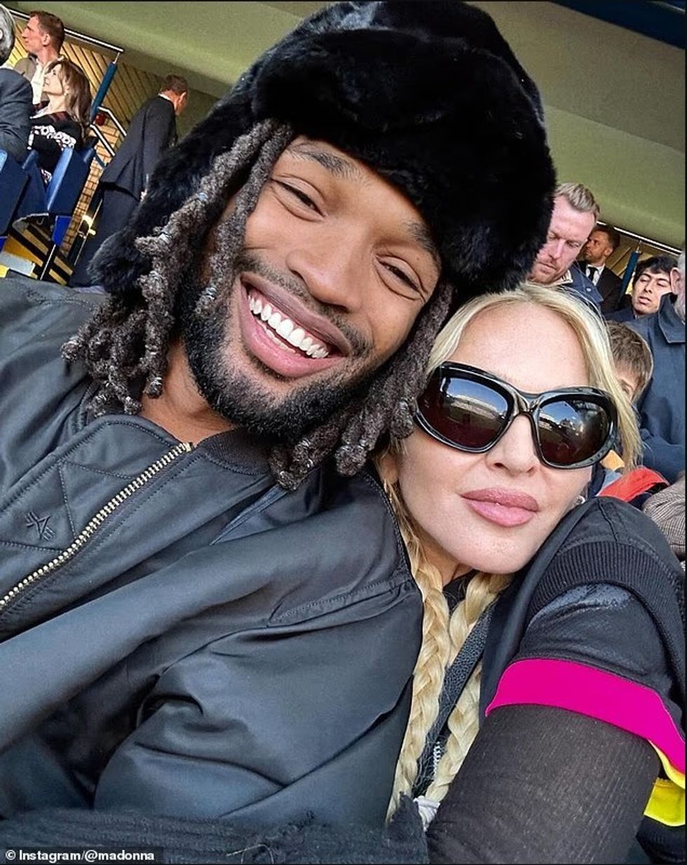 Madonna mbajti një profil të ulët gjatë një daljeje të rrallë publike në Londër, ku u pa në stadiumin “Stamford Bridge” për të ndjekur ndeshjen Chelsea–Liverpool, në shoqërinë e të dashurit të saj, Akeem Morris.