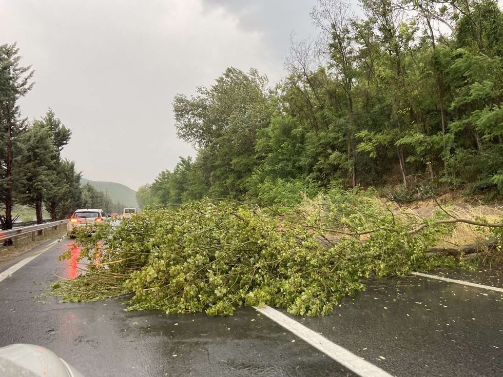 Në rrjetet sociale tashmë qarkullojnë video dhe foto, përfshirë një video të një peme të rrëzuar në autostradën Shkup - Tetovë. Deri më tani, nuk ka informacione për të lënduar ose dëme të mëdha materiale.